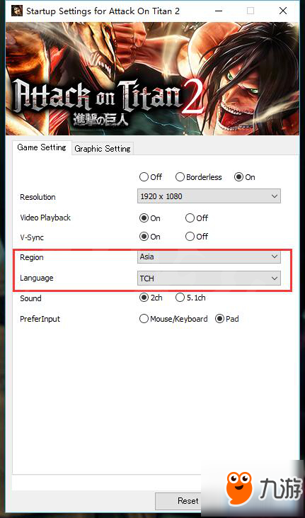 启动器里Region(地区)设置Asia(亚洲),Language(语言)设置TCH(繁体中文/正体中文)。