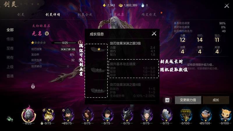 剑灵合成与收集也是提升剑灵品质的重要途径。若未抽到理想的剑灵,可通过剑灵合成来获取更强的剑灵。合成4个同级剑灵需要25个相同剑灵结晶,重复获得已拥有的剑灵会自动转化为25个对应剑灵结晶。每次获取或升级剑灵后,新剑灵会记录在剑灵收集中。当获取至尊级或以上的剑灵时,需要在确认剑灵界面使用确定按钮来选定该剑灵,若不想要该剑灵,可消耗神石重新抽取其他相同级别的剑灵。
