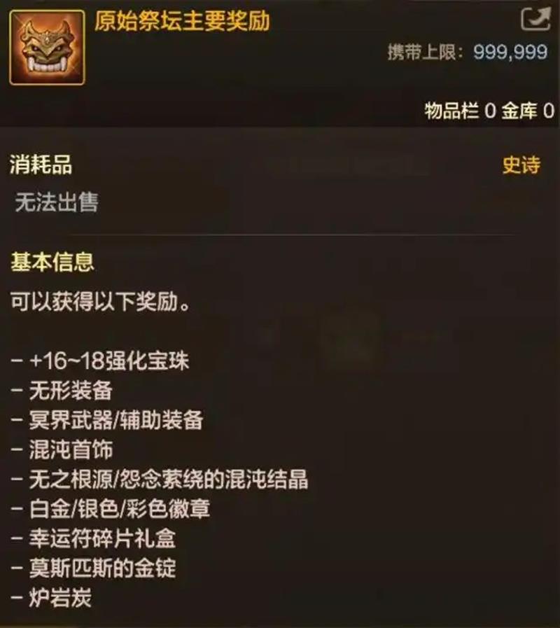 原始祭坛的挑战机制独特,随着勇士们击败各阶段的怪物,祭坛会不断升级并变化形态。祭坛的升级越高,勇士们获得高价值奖励的概率越大。在原始祭坛中,勇士们不仅可以获得西部深渊的基础奖励,还有机会获得专属于原始祭坛的额外掉落奖励,如终极“无形装备”。