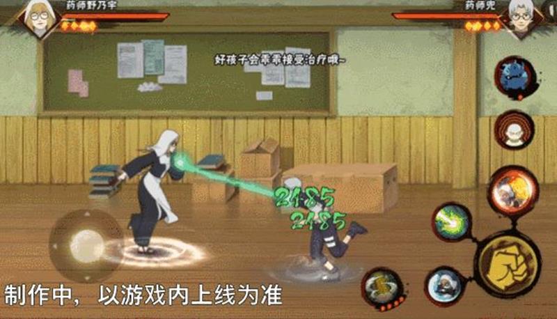 药师野乃宇释放二技能:掌仙术时会在原地生成治疗光圈,若敌人处于光圈范围内会连上一根医疗查克拉线,并持续对敌人进行治疗。被链接的敌人会受到减速,药师野乃宇自身则有加速效果,链接过程中双方均可自由行动。