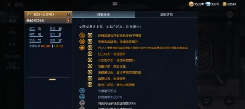 SCAR-心动PICK由于其优秀的稳定性,在一些大图上对枪上可能会有出乎意料的效果,同时由于它的PICKS属性,玩家们可以根据自己的需要搭配不同的女团形态,也赋予了这款武器更多的玩法和可能性。