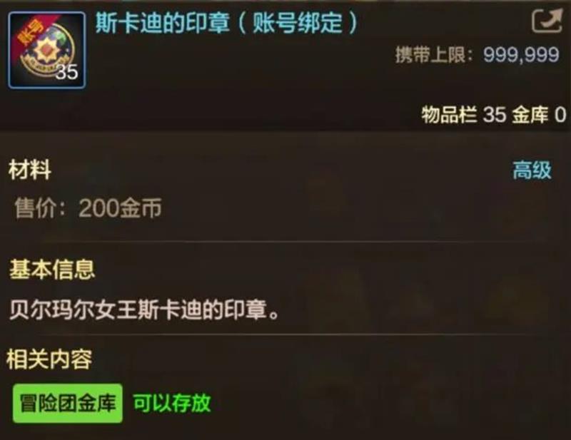 斯卡迪的印章是攻坚战入场的必备材料,冒险者在各种地下城中都能获得该印章,建议大家妥善保存,以备不时之需。