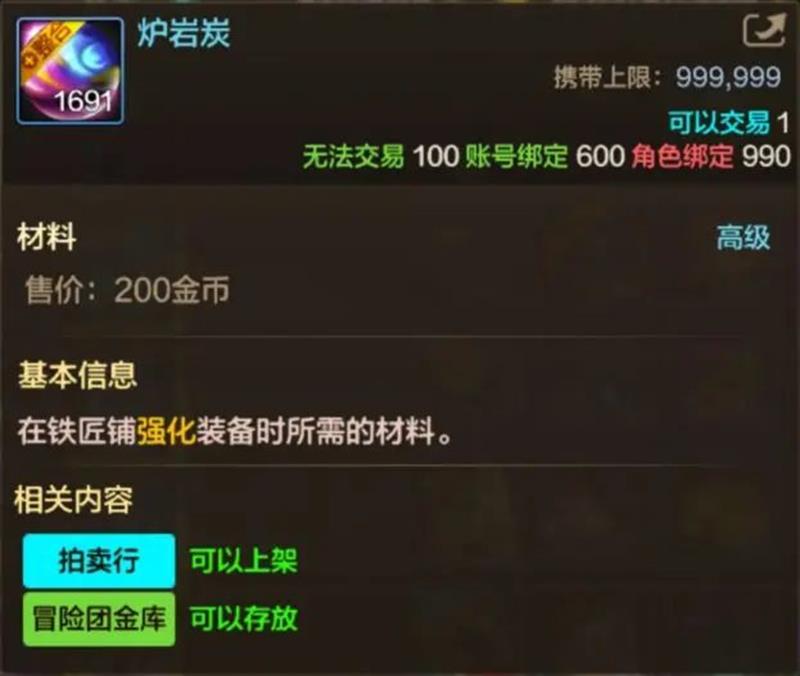 炉岩炭是强化装备必备的素材,同时也是搬砖的重要资源之一。冒险者可以通过每日委托任务“哥布林的秘密宝库”来获取一定量的炉岩碳,此外,勇士级地下城的掉落也是炉岩碳的重要来源。