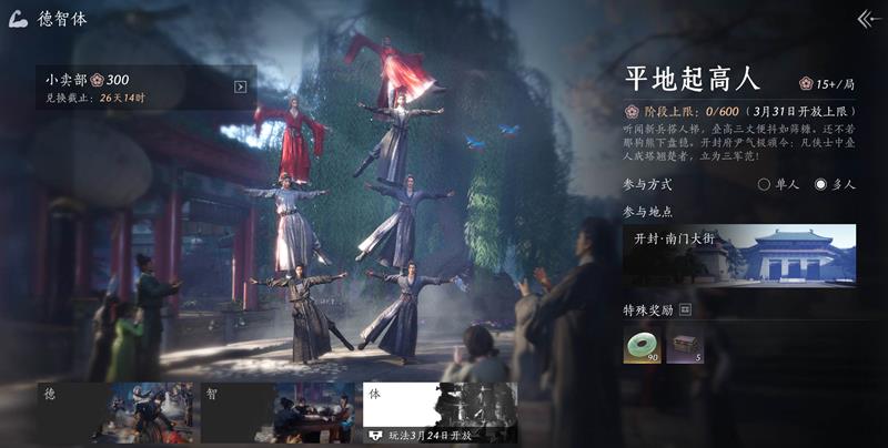 体赛·平地起高人:玩家需要在开封南门大街限时叠起人梯,考验玩家之间的协作和平衡能力。