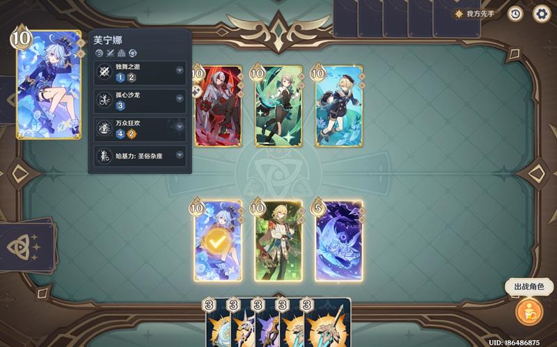 在准备及投掷阶段,选择芙宁娜作为初始出战角色。