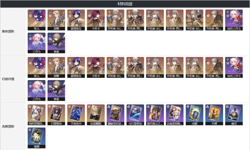 希儿、彦卿、真理医生、卡芙卡、开拓者、仙舟三月七、三月七、青雀的角色升阶(突破)和技能行迹升级都需要消耗篡改的野心。