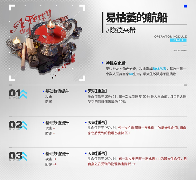 以上就是明日方舟隐德来希的模组「易枯萎的航船」的详细升级预览情报了,如果这篇攻略对你有帮助,还请点个收藏关注一下我们,各位读者的支持就是我们持续更新的最大动力。