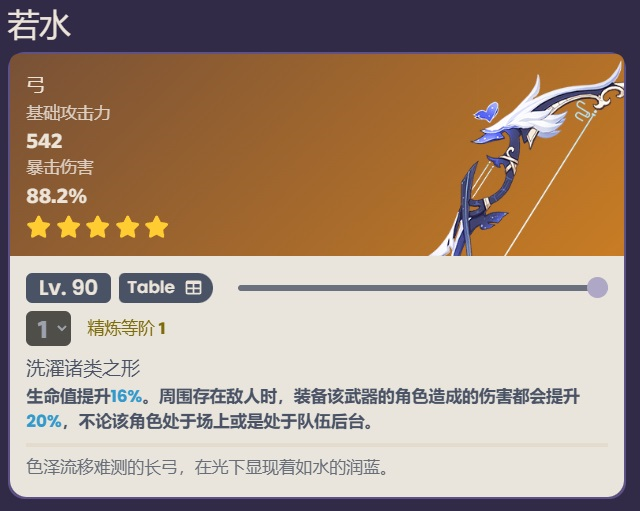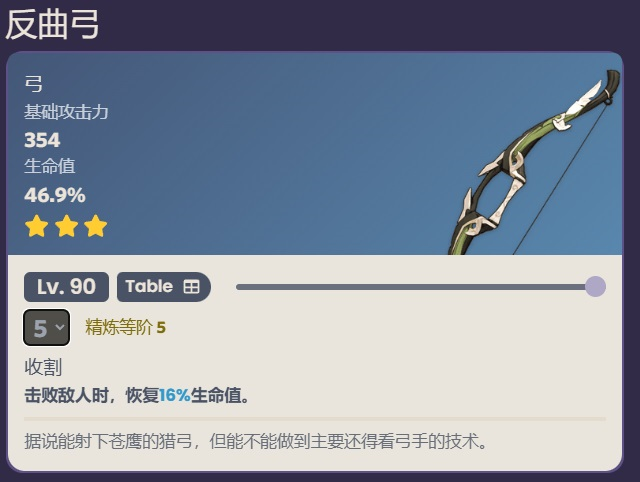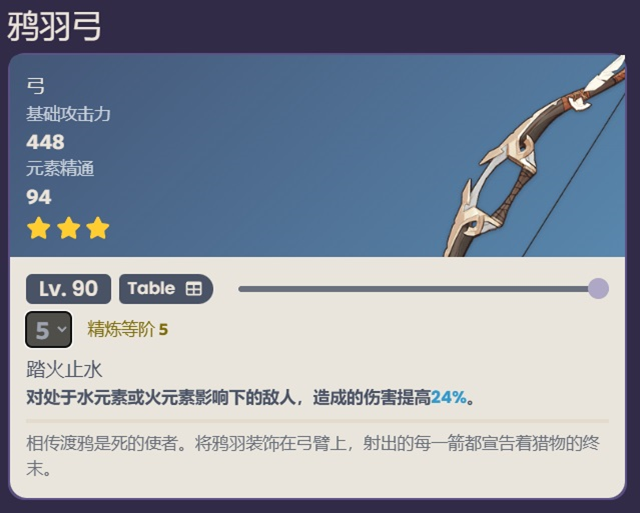 鸦羽弓 如果你没有更好的武器,且前期需要给希格雯找一把用得过去的弓,鸦羽弓是一个不错的选择。它的特效能够提升对水元素或火元素附着的敌人造成的伤害,在水元素队伍中有一定的作用。但由于副属性是攻击力加成,不是希格雯的核心需求,因此仅适合作为前期过渡武器。