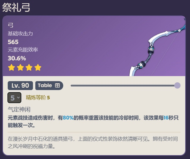 如果你需要提高希格雯的技能循环能力,让她能够频繁施放战技并产生更多水元素微粒,祭礼弓是四星武器中最好的选择。
