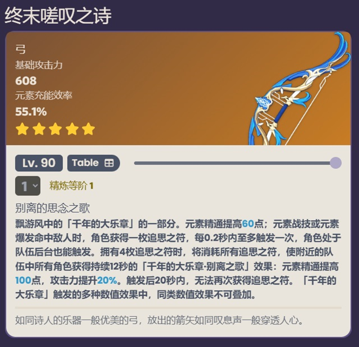 终末嗟叹之诗——团队增益向选择 这把武器的核心在于提供充能效率和队伍增伤,如果你希望希格雯除了治疗以外还能增强队友攻击力和元素精通,终末嗟叹之诗会是一个不错的选择。它的充能效率能帮助希格雯更快地释放元素爆发,增强她的团队增益能力。