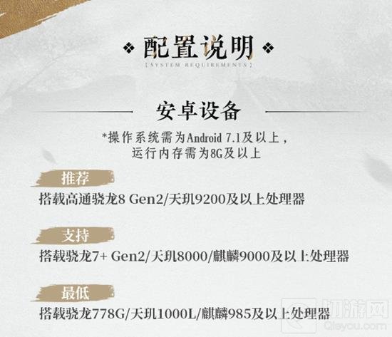 操作系统需为Android 7.1及以上,运行内存需为8G及以上