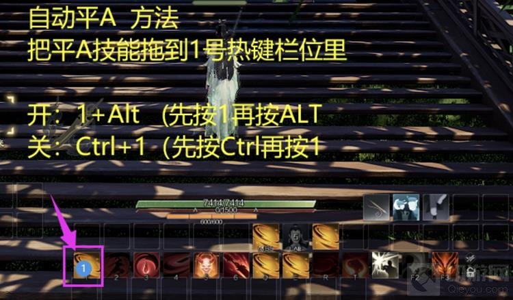 使用1+Alt组合键开启自动平A(即先按住1键,再按Alt键)。