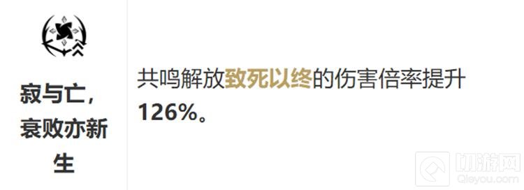 效果:共鸣解放技能【致死以终】的伤害倍率提升126%。