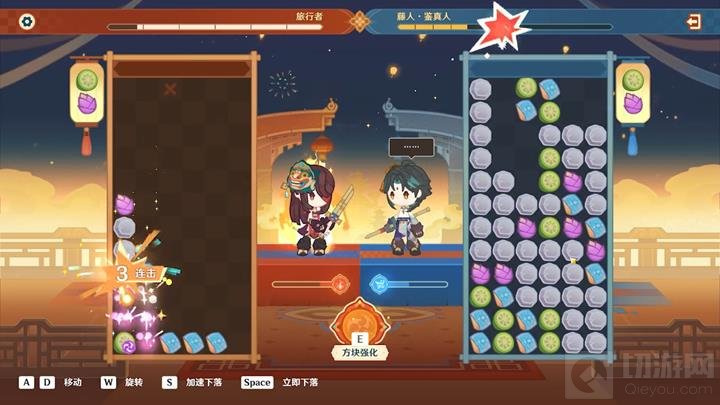 为了在对战中占据优势,玩家需要提前规划方块的落点,设计出能够触发连锁反应的布局。通过一次性连击消除多个方块,不仅可以对敌人造成更多干扰,还能更快地为藤人技能充能。在局势不利时,要优先清除可能导致失败的区域,确保场地内有足够空间继续操作。