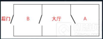 场馆平面图如下,A房间里放着一排盒子,大厅看不见房间内发生的事情。