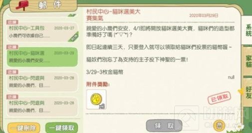 3、在猫咪选美大赛活动期间,官方每日都会赠送10个银猫币给玩家,玩家可以前往邮箱中进行领取;