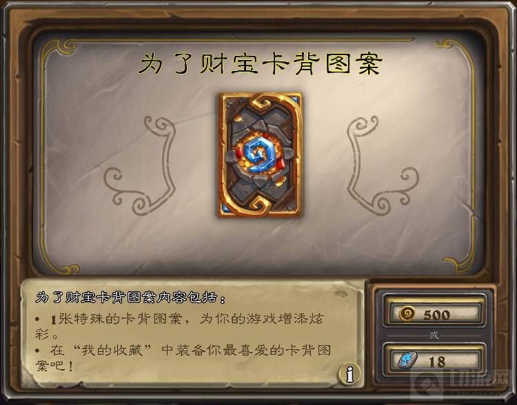 与麦迪文同时上架的还有为了财宝卡背图案,玩家在返场活动期间内可以花费500金币或者18符文石来解锁该特殊卡背图案,以前没有得到过该卡背的玩家可以通过本次返场机会重新获得。本次的返场时间将持续到4月12日,大家一定要在活动时间内购买哦,错过了就没有了。