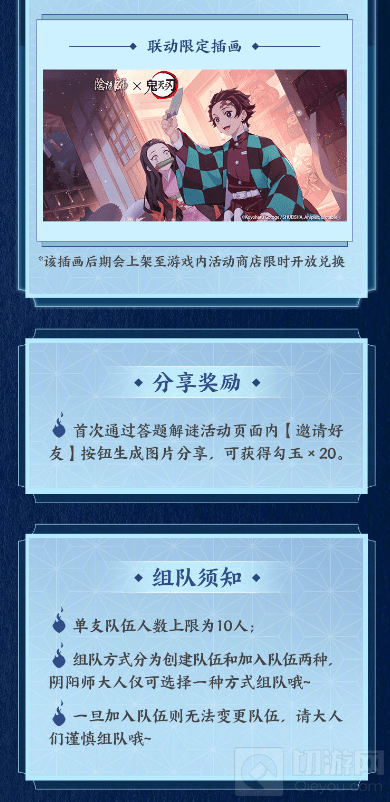 ※大人们可邀请好友加入解谜队伍,根据组队人数可解锁御行达摩碎片、联动限定插画等多重奖励!