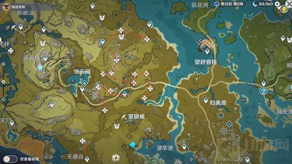 参考上面的图片中的标记,玩家们就能够知道在哪些地方可以找到清心了。