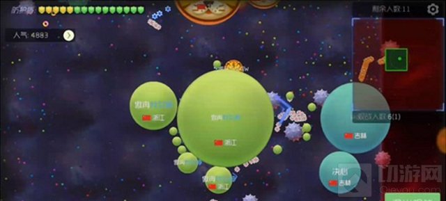 6、体积不够大就不要冒险分裂,全部聚集在一起可以非常有效地保证自己的安全,而且也有更大的几率去吃掉对手!