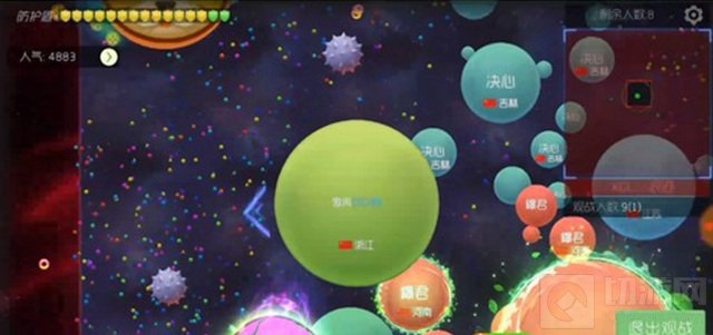 5、在中后期阶段场地狭小,而陨石又非常多,吃陨石发育非常威胁。我们必须伺机而动,当对手碰到陨石不幸分裂的时候就迅速将其拿下!