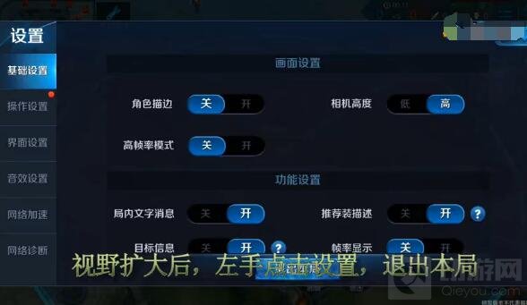 视野扩大后,左手点击设置,退出本局;