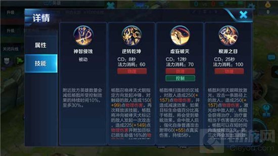 解析:这是一个反杀神技。当敌人的血量低于杨戬时,这个技能只提供减速效果,但是当敌人的血量高于杨戬时,这个技能就变成了眩晕。当敌人试图杀掉残雪的杨戬时,往往会被杨戬配合这个技能形成反杀。