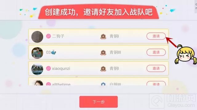 其实招募战队成员的方法也有很多哦~~创建战队之后,就会进入邀请好友的界面~