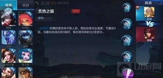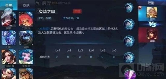 一技能炙热之风:强化攻击,每次攻击对面前区域内两名敌人普攻,效果持续五秒。这个技能还是和重做之前一技能的机制差不多,都是强化普攻,只不过以前是对一个英雄射出三箭,现在是对两个英雄分别普攻,从介绍来看,这个技能是自带锁敌效果的,也就是指向性攻击