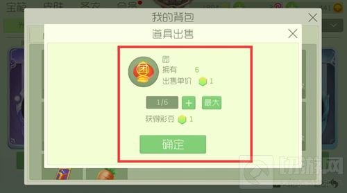 其实很简单,球宝们只需点击你想要出售的道具,然后就会弹出一个道具出售界面,如下图,球宝们选择好自己要出售的道具个数,然后就点击“确认”,就可以出售啦。