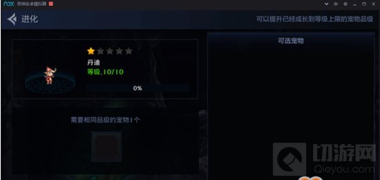如果你偏爱一只宠物,但它的品质比较低怎么办?这个时候我们可以采取进化解决,选择一只相同品质的宠物作为进化材料来进行升星获得更好的属性。