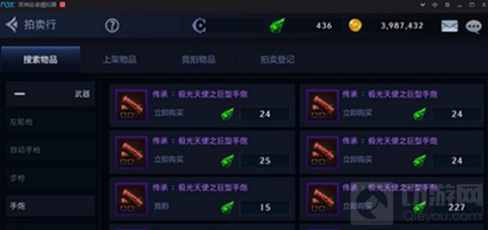 点开武器项尝试搜索,可以看到系统根据不同种类把武器进行了分类。点开“左轮枪”看到一排排左轮枪显示出来,右下角的数字代表该武器的上架数量。点开后可以看到不同的价格,当然只能用DNF手游专属货币——泰拉币购买。
