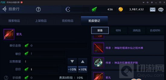 此外物品上架时会有一个单价走势,就是该物品在拍卖行的平均价格,若没有此物品则显示为0。和端游一样需要手续费,为10%。不过这个贵宾0是什么意思不清楚,从四测有拍卖行功能后就一直存在,不过没开放,估计就是所谓的VIP吧。