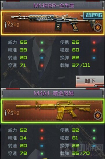 M4A1作为游戏中的热门武器,其属性之强肯定不用多说,而两把武器从对比图上来看,区别其实并不大,除了一些武器基础属性有偏差外,M14EBR-金牛的威力和精准度完爆了暗金风暴,由此可见,金牛座这把武器的强大。
