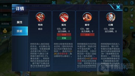 团战技巧:阿轲团战和其他刺客没有太大区别,站位不要太过于靠前,可以利用被动技能隐身绕后,直接切掉对方的输出英雄。阿轲击杀英雄后会立即刷新技能,所以对敌方残血英雄进行持续收割完成五杀的概率超高。