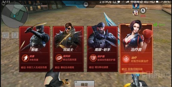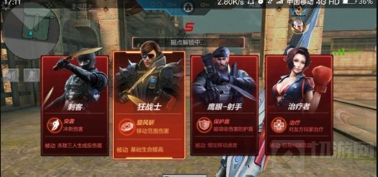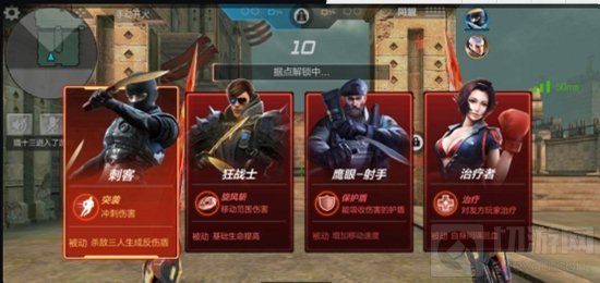 简单分析一下场上的四个角色,刺客,伤害高,技能可以快速位移造成伤害,适合切后排和游走抓人,血量较少,战士,场上最猛的一个,拥有两个技能,一个横劈攻击时无敌几秒,一个旋转一次造成20点伤害,适合一次打多人,血量较多,鹰眼,一个远程的射手,技能是一个保护盾,防止被敌人近身抵挡伤害用的技能,不知道为什么被很多人认为这个角色最鸡肋,但是个人感觉还可以,远程也是不错的,血量中等医生,最重要的一个角色,可以加血,以及给队友加血,非常的厉害,战场上随时补给全靠她,所以要打先打医生,医生全死了就很好胜利了,医生一直给队友加血甚至可以让队友处于不死之身。