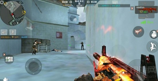 不过我们也要注意自己的后面有没有敌人,因为我们冲过来的动静这么大,中路卡点的保卫者和A包点的保卫者肯定会察觉,毕竟小地图上面可以看出B点失守,所以保卫者一定会立即回防反击!他们反击只有两条路线,一条是保卫者基地到B包点,一条是中路虎口到B通。我们可以躲在虎口右边的箱子后面,敌人去B通的时候再出来从后面偷袭,这种方法屡试不爽,百试百灵!