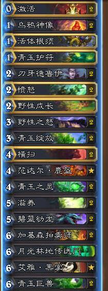 战吼这套牌很多,例如蓝龙、青玉巨兽、刃牙德鲁伊、青玉之灵等。