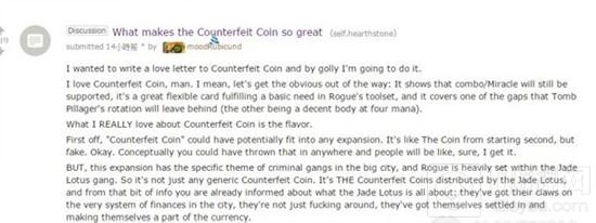 很多段子都充满了诚(tao)意(lu),让人不禁问为什么没有支付宝二维码,但是多了还是会视觉疲劳的,不妨看看炉石总监Jason钦定的reddit论坛上,大洋彼岸的炉石玩家们对新系列有什么吐槽吧。
