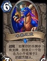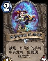 关于火门的问题我也不想再说太多,卡拉赞除了火门之外最让人感到不爽的应该就是那两张龙系列的卡牌了吧。这两张卡的共同特点就是:卡手,不稳定,但上限极高。我们先来说说史学家吧,如果以前有人和我说打竞技场要防死亡之翼,我一定认为那人脑子有毛病。但是如果你上过月这样和我说,那么我会认为这很有道理。当你日常被对面死亡之翼翻盘,你就不得不相信,一旦对面扔出史学家并成功发现一张牌以后,我们就有必要一直盯着这张牌。如果它一直没有被打出来的话,我们很有必要相信对面拿的就是一张死亡之翼。但是实际上,如果没有选到足够多的龙(4张以上),这张卡非常容易在手里卡很久的。而且说实话这张牌拿到死亡之翼的概率也并不如我们想象的那么高,大概六七次才能发现到一次。当然我并不是说史学家的意义只在于发现死亡之翼,问题是当我们手牌很多的时候,我们为什么要亏节奏去发现一张很久以后我们才能使用的卡牌。而当我们手牌很少,需要补牌的时候,我们又如何保证这张牌的触发呢?