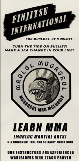 鱼人柔术俱乐部,在鱼人的头像旁边都是鱼人语,其余的广告宣传语非常浮夸。在最后甚至用下划线标明教授的都是实用技术,那么一想就知道有多么不实用了。