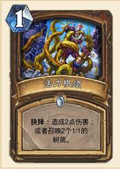 而根须本身就是一张很强适用性很高的卡牌,削了不亏,砍成2费也不会和其他法术重复。如果砍2费的话,效果可以适当提升一点,比如召唤3个11的树苗。