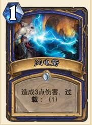 闪电箭:大多数时间我们都是将这张卡牌利用为一种解场的手段,另外在关键时刻作为斩杀输出到时也不错。而且费用低,使用灵活。配合上法强能够打4。