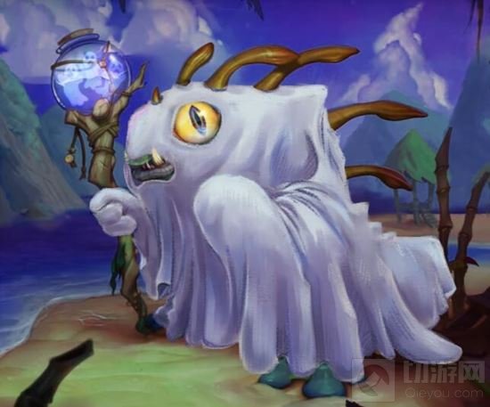 用床单装扮成幽灵的摩戈尔,玻璃罐里还装着三只鬼魂。