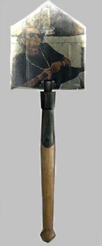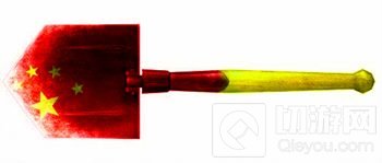 中国国旗利用喷漆的方式展现在军用铁锹之上。