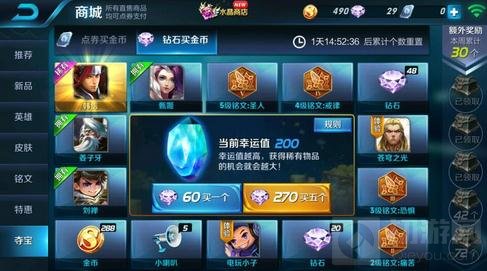 我们姑且按照人品差,想要抽到韩信,需要将钻石抽奖的幸运值积满,也就是201点,同理在钻石夺宝系统中抽取201次才可以抽取到韩信这位英雄。