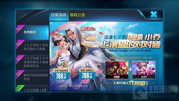王者荣耀七夕皮肤价格分享 小乔周瑜都入手