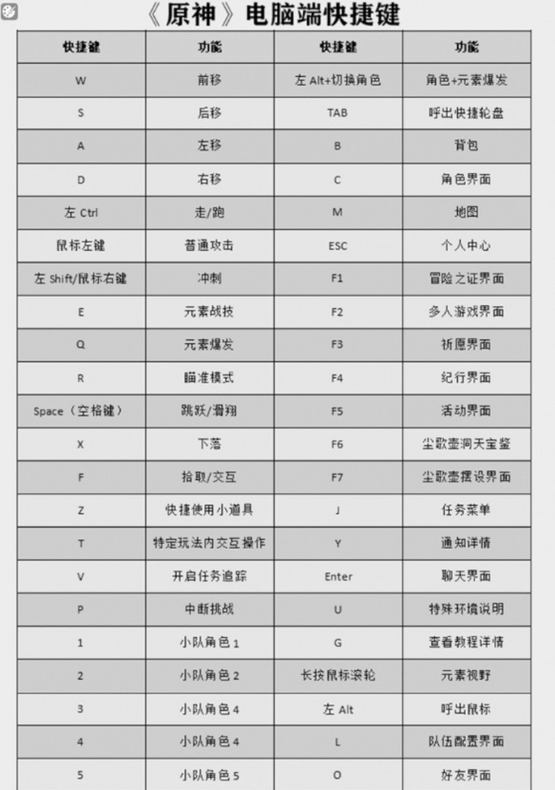 原神PC端快捷键有哪些 原神电脑版键盘鼠标操作指南