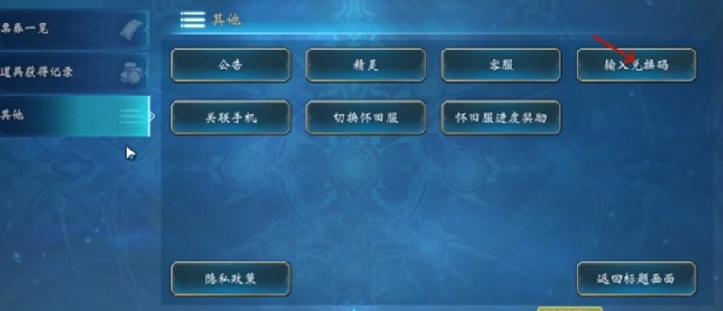 在影之诗超凡世界游戏中,点击右上角的九宫格图标,选择”其他”菜单,找到”输入兑换码”选项。输入正确的兑换码后,系统会立即发放对应的奖励到玩家的账号中。