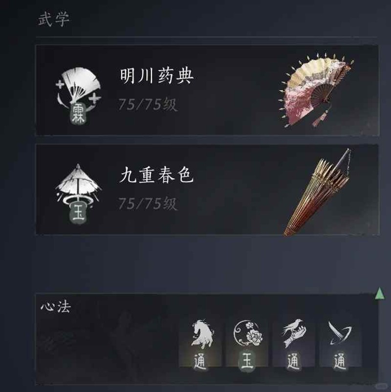 在三率及格的情况下(黄字精准率98%~100%,会心要求结合图二图三,会意20%左右),优先堆最大外功,单体爆发类奇术增伤,首领增伤。伞武学增伤和全武学增伤是锦上添花。定音的话玩走地玉就优先伞特殊技定音。